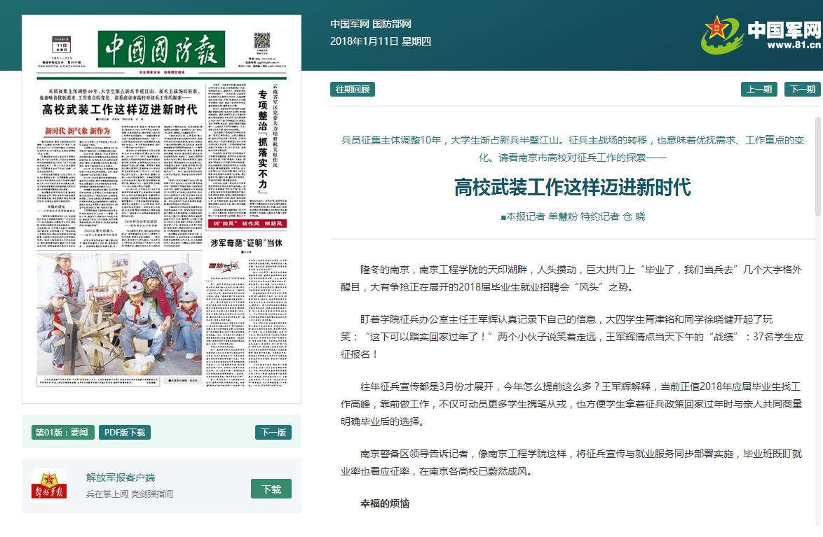 《中国国防报》:高校武装工作这样迈进新时代