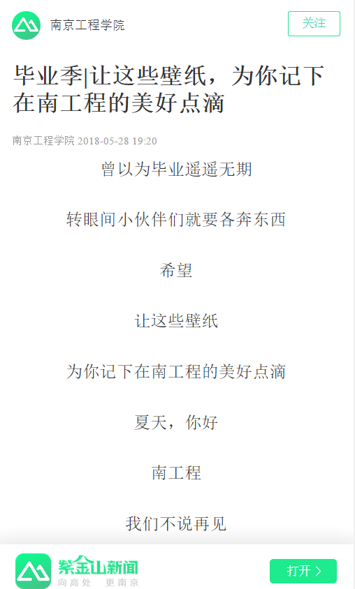 《紫金山新闻》:毕业季|让这些壁纸,为你记下在南工程的美好点滴