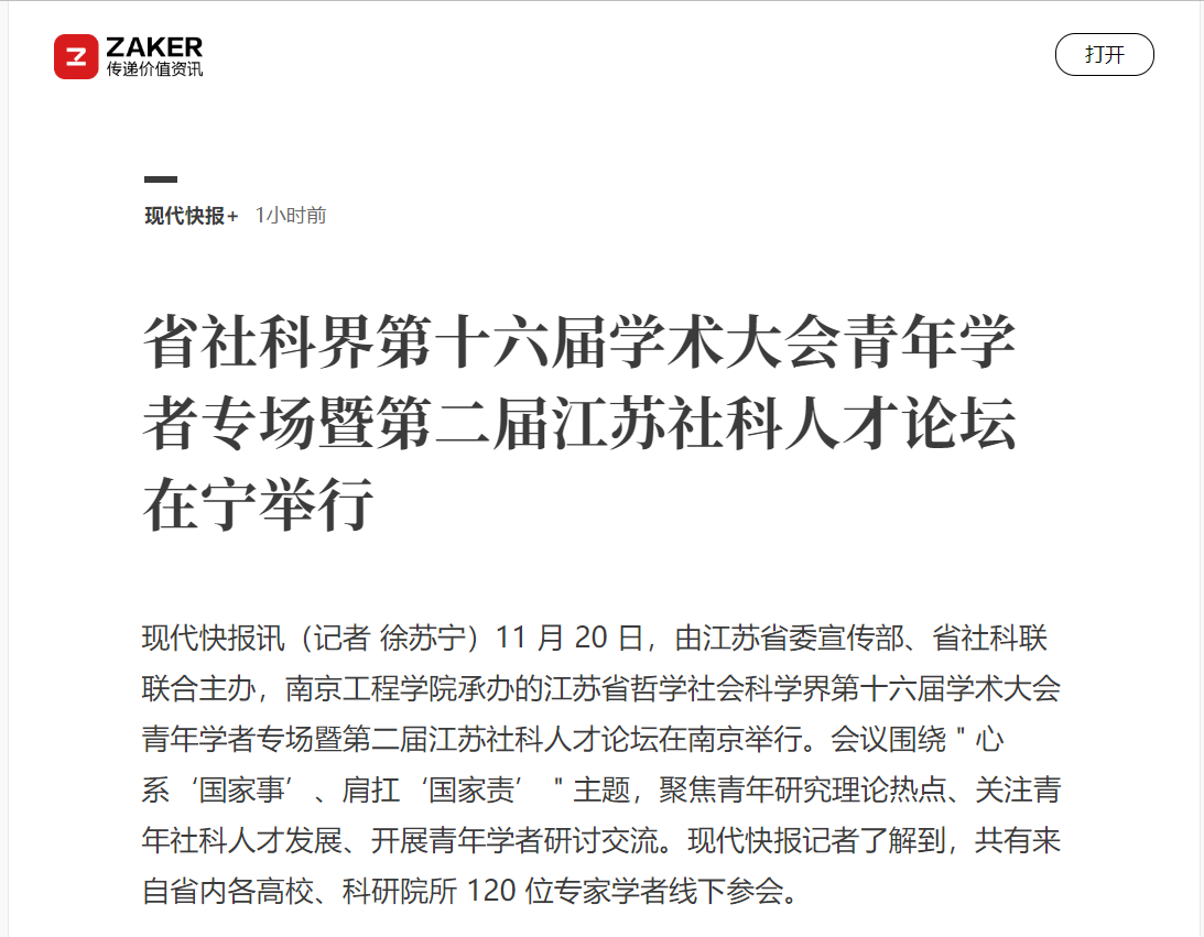 现代快报讯(记者 徐苏宁)11 月 20 日,由江苏省委宣传部、省社科联联合主办,凯发k8官网承办的江苏省哲学社会科学界第十六届学术大会青年学者专场暨第二届江苏社科人才论坛在南京举行。会议围绕 " 心系‘国家事’、肩扛‘国家责’ " 主题,聚焦青年研究理论热点、关注青年社科人才发展、开展青年学者研讨交流。现代快报记者了解到,共有来自省内各高校、科研院所 120 位专家学者线下参会。