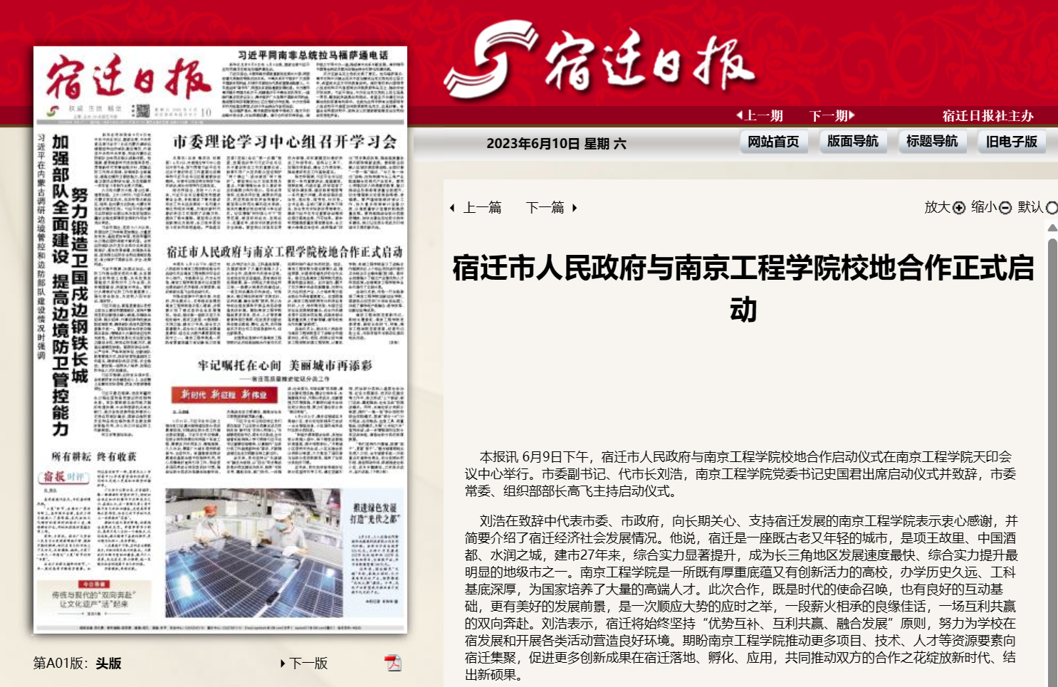 《宿迁日报》:宿迁市人民政府与凯发k8官网校地合作正式启动