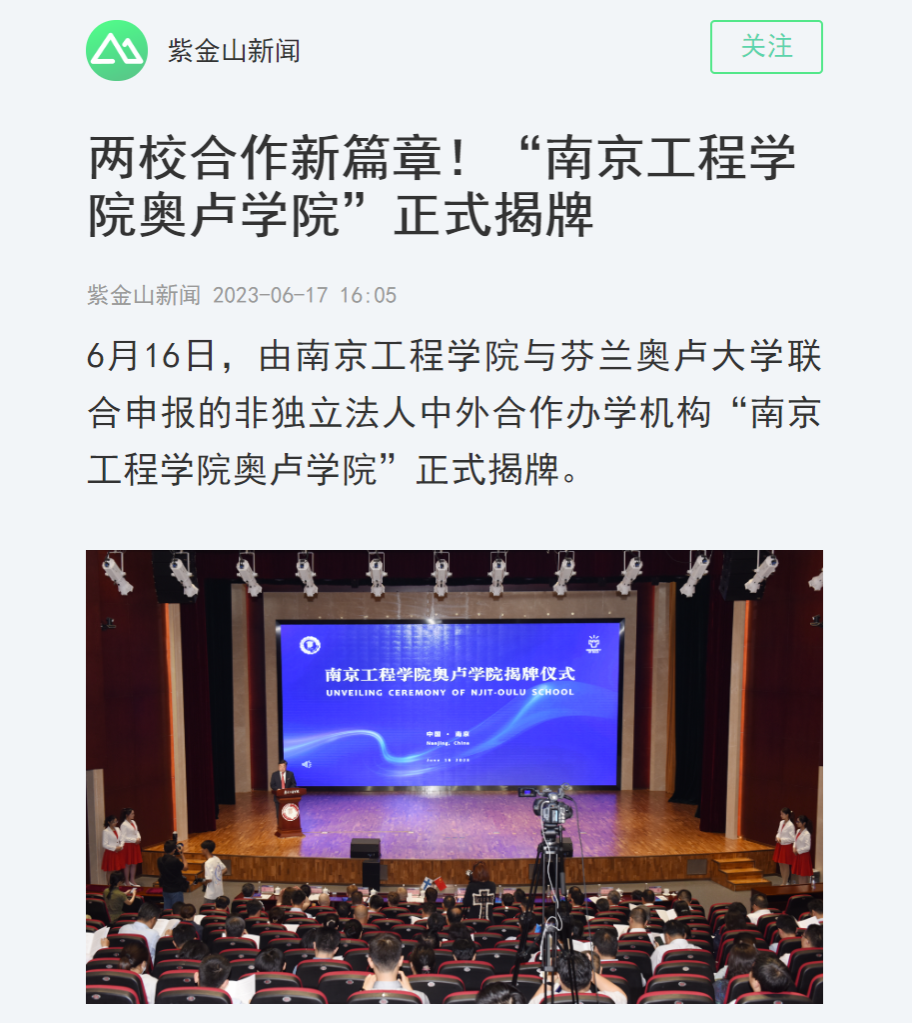 6月16日,由凯发k8官网与芬兰奥卢大学联合申报的非独立法人中外合作办学机构“凯发k8官网奥卢学院”正式揭牌。
