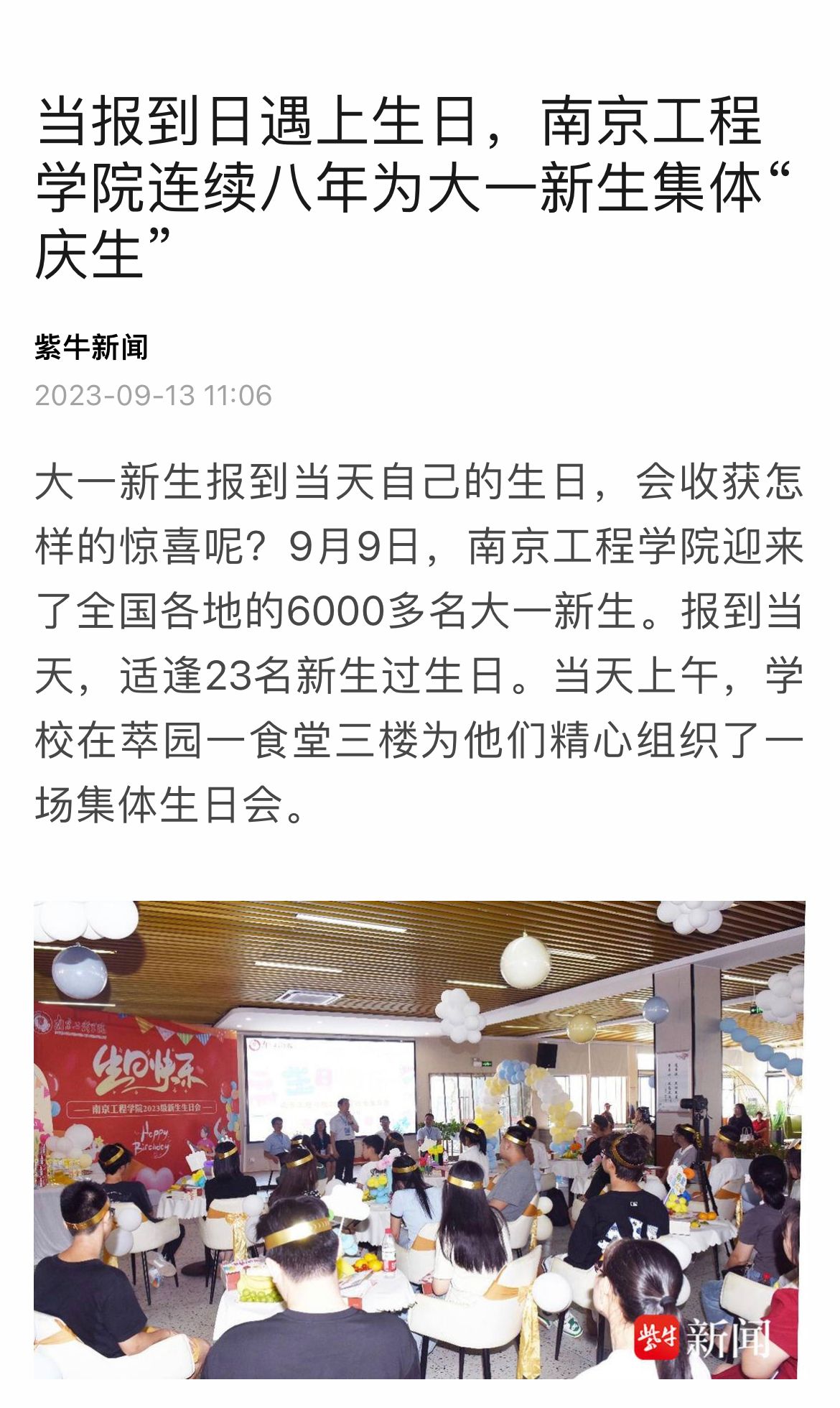 《扬子晚报》:当报到日遇上生日,凯发k8官网连续八年为大一新生集体“庆生”