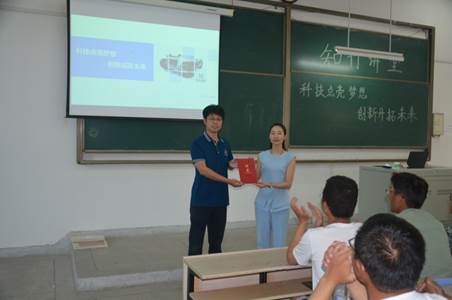 讲座伊始,费凯成结合自身经历,从当前科技创新产品前沿分析、大学生如何提高自己的科技创新能力和大学生如何规划自己的创新之路三个方面阐述,重点讲述了提高科技创新能力的八个方法,从最初的“减一减”、“仿一仿”、“改一改”到最后的自主研发,深入浅出、通俗易懂。他鼓励大学生们珍惜现在的学习机会,发扬“工匠精神”,不怕困难,砥砺前行。讲座结束后,该中心分管学生工作副书记王雪飞为费凯成颁发聘书。