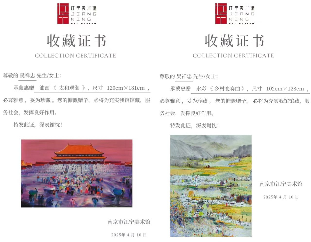 展览由艺术与设计学院、江宁美术馆、《水彩研究》联合主办,现场展出的数十幅作品是吴祥忠以“造境”为核心理念,通过水彩、油画等媒介融合东方美学意境与当代艺术语言,创作出的诗意空间,引发观众对艺术与生命关系的深度思考。活动期间还举行了作品捐赠仪式,吴祥忠向江宁美术馆捐赠代表作《江南叠韵》等作品,丰富公共艺术收藏。本次展览搭建了艺术学科间交流合作平台,促进了艺术创作理念的传播,也为市民提供了近距离感受艺术魅力的机会,提升城市美育发展与精神文化生活。